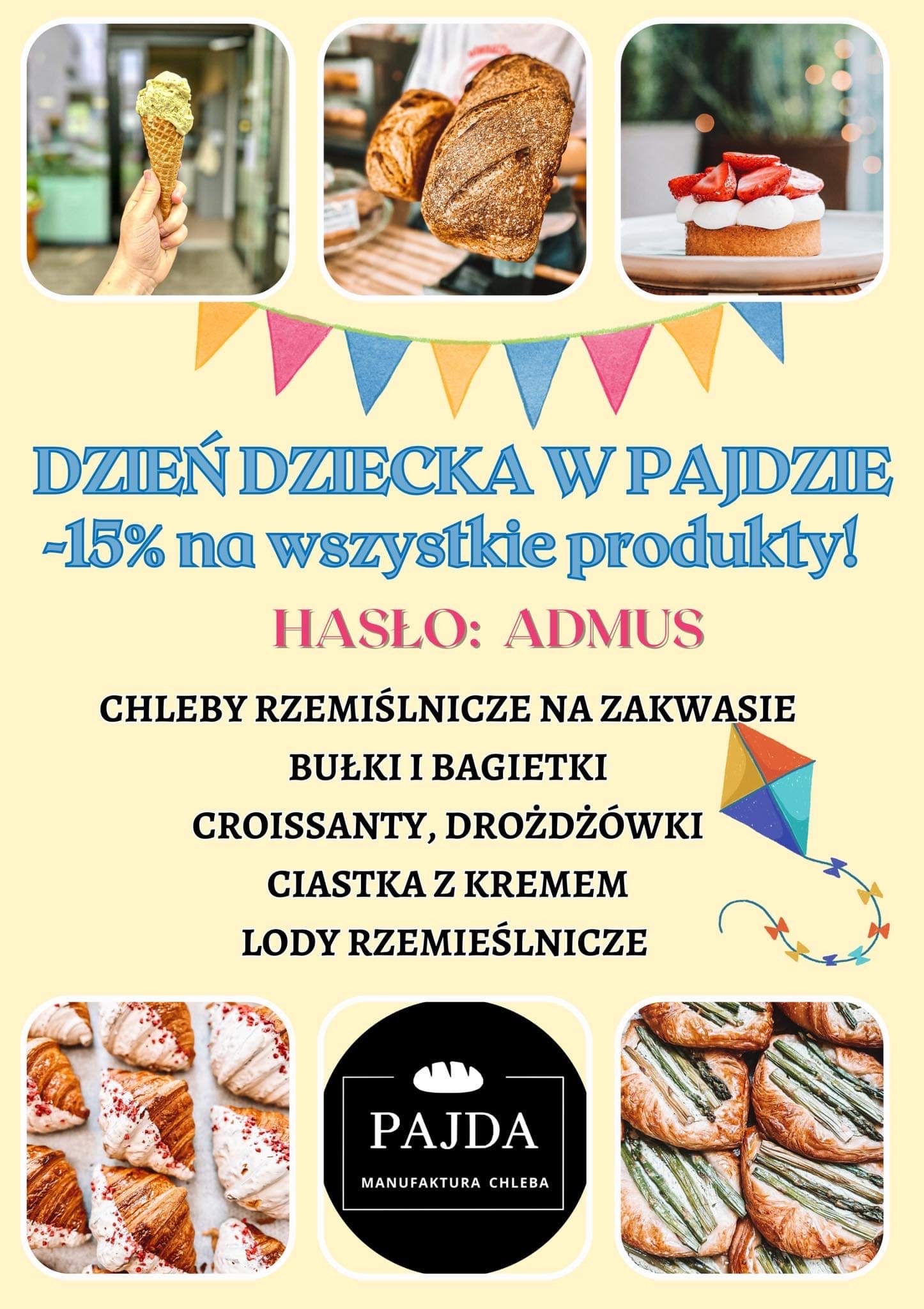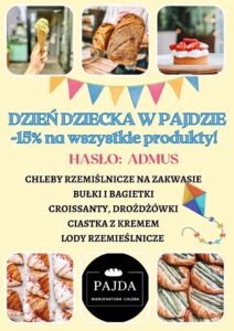 Zachęcamy także do skorzystania ze specjalnej propozycji – na hasło: ADMUS w: Słodkie Zacisze Cafe na Placu Ostrej Bramy dzieci otrzymają darmową posypkę do zakupionych lodów, a w Pajda – Manufaktura Chleba przy ul. Montwiłłowskiej 7 rabat -15% na wszystkie produkty.