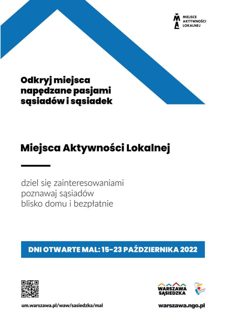 W dniach 15-23 października 2022 odbędą się Dni Otwarte MAL (Miejsc Aktywności Lokalnej) 2022.