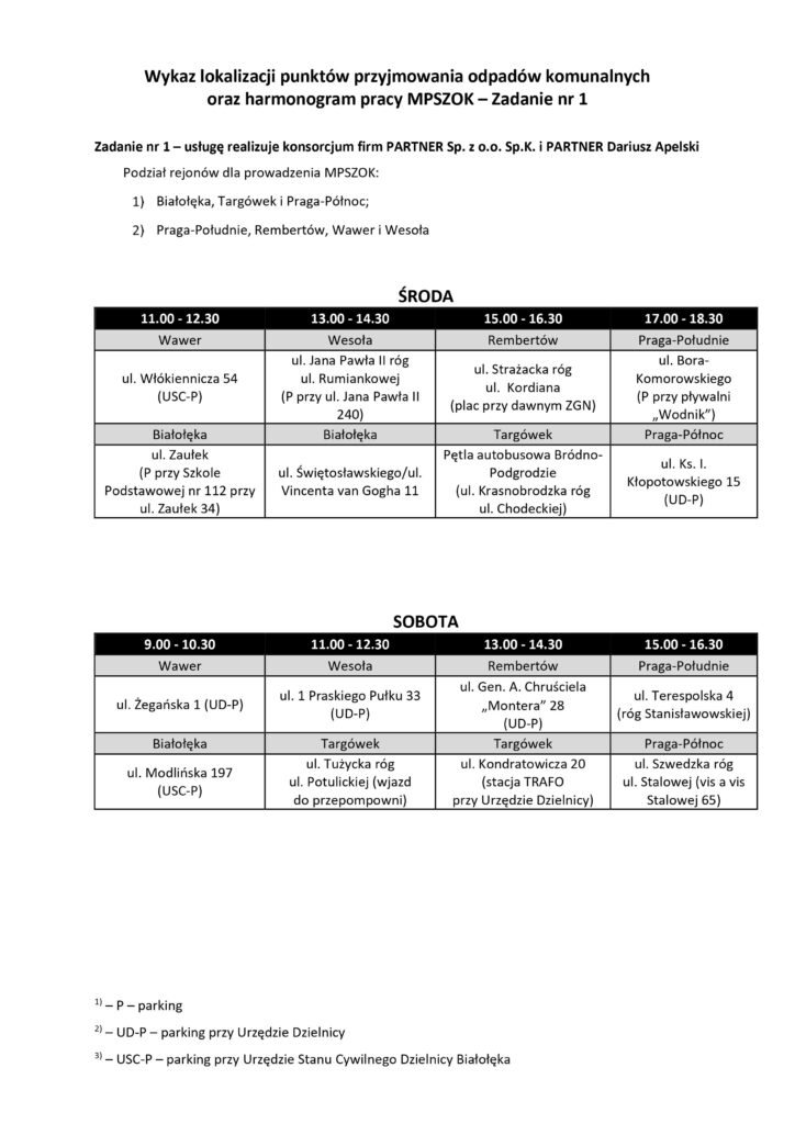 1 października 2022 r. zmienią się godziny pracy punktu selektywnego zbierania odpadów komunalnych przy ul. Płytowej 1. PSZOK będzie funkcjonował od PN-PT- 11:00-19:00, SB- 9:00-17:00. Dodatkowo zmieniają się godziny i miejsca postoju mobilnych punktów selektywnego zbierania odpadów komunalnych (MPSZOK) dla prawobrzeżnej strony stolicy, prowadzony przez Konsorcjum PARTNER, tj. w dzielnicach Białołęka, Targówek i Praga-Północ, Praga-Południe, Rembertów, Wawer i Wesoła.