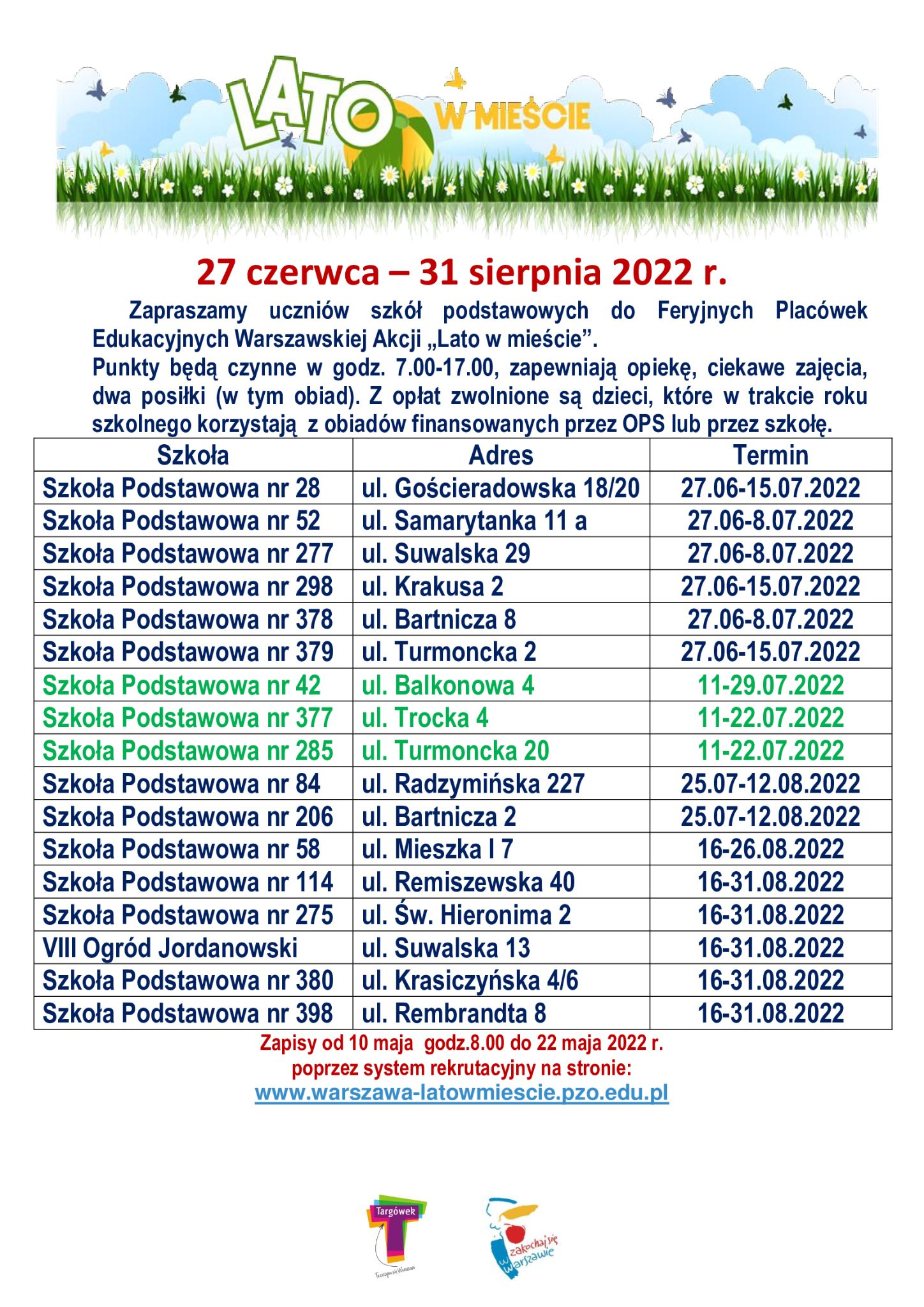 - w niedzielę, 22 maja, w godzinach 12.00-20.00