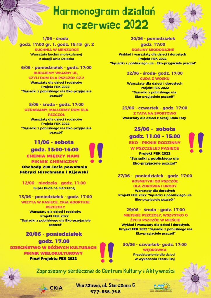 Zaproszenie do Centrum Kultury i Aktywności. Czerwiec 2022