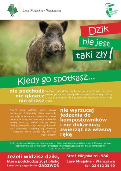 W przypadku bezpośredniego zdarzenia z udziałem jakiejkolwiek zwierzyny dziko żyjącej prosimy zadzwonić do Straży Miejskiej pod numer 986.