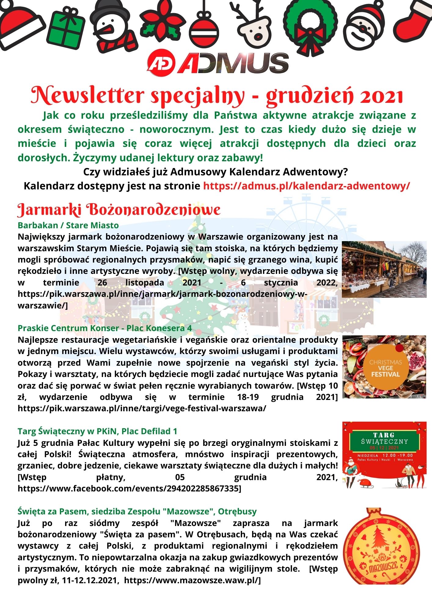 Okres Bożego Narodzenia jest wyjątkowy. To czas spotkań z najbliższymi, serdeczności i wspaniałych życzeń. Wszyscy – dorośli i dzieci – czekają już na prezenty. Zespół ADMUS też przygotował dla Państwa niespodziankę.