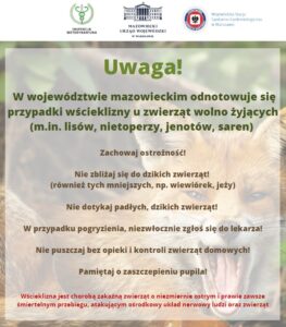 Przypominamy, że w okolicy pojawiły się w ostatnim czasie przypadki wścieklizny. W związku z tym zachęcamy do szczepienia psów i kotów przeciwko wściekliźnie.
