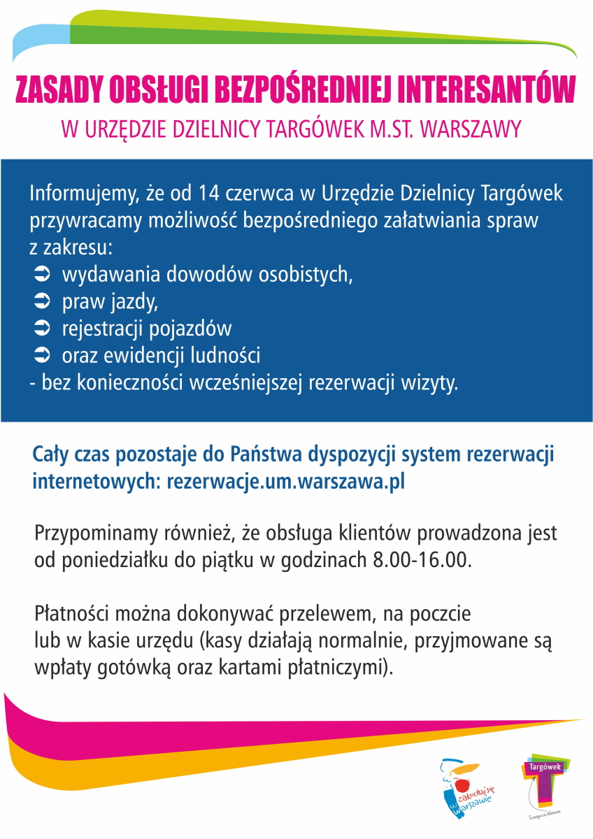 Zasady obsługi bezpośredniej interesantów w Urzędzie Dzielnicy Targówek m.st. Warszawy