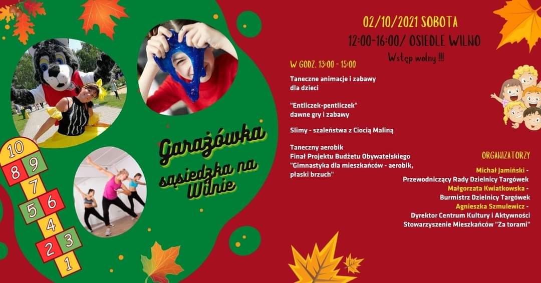 W imieniu Stowarzyszenia Mieszkańców „Za Torami” oraz Centrum Kultury i Aktywności zapraszamy na sąsiedzką „garażówkę” na Osiedlu Wilno. Będzie można pobawić się, zintegrować, przewietrzyć szafy, znaleźć skarb niepotrzebny już sąsiadowi, podsumowując – miło i ciekawie spędzić czas w najbliższej okolicy.