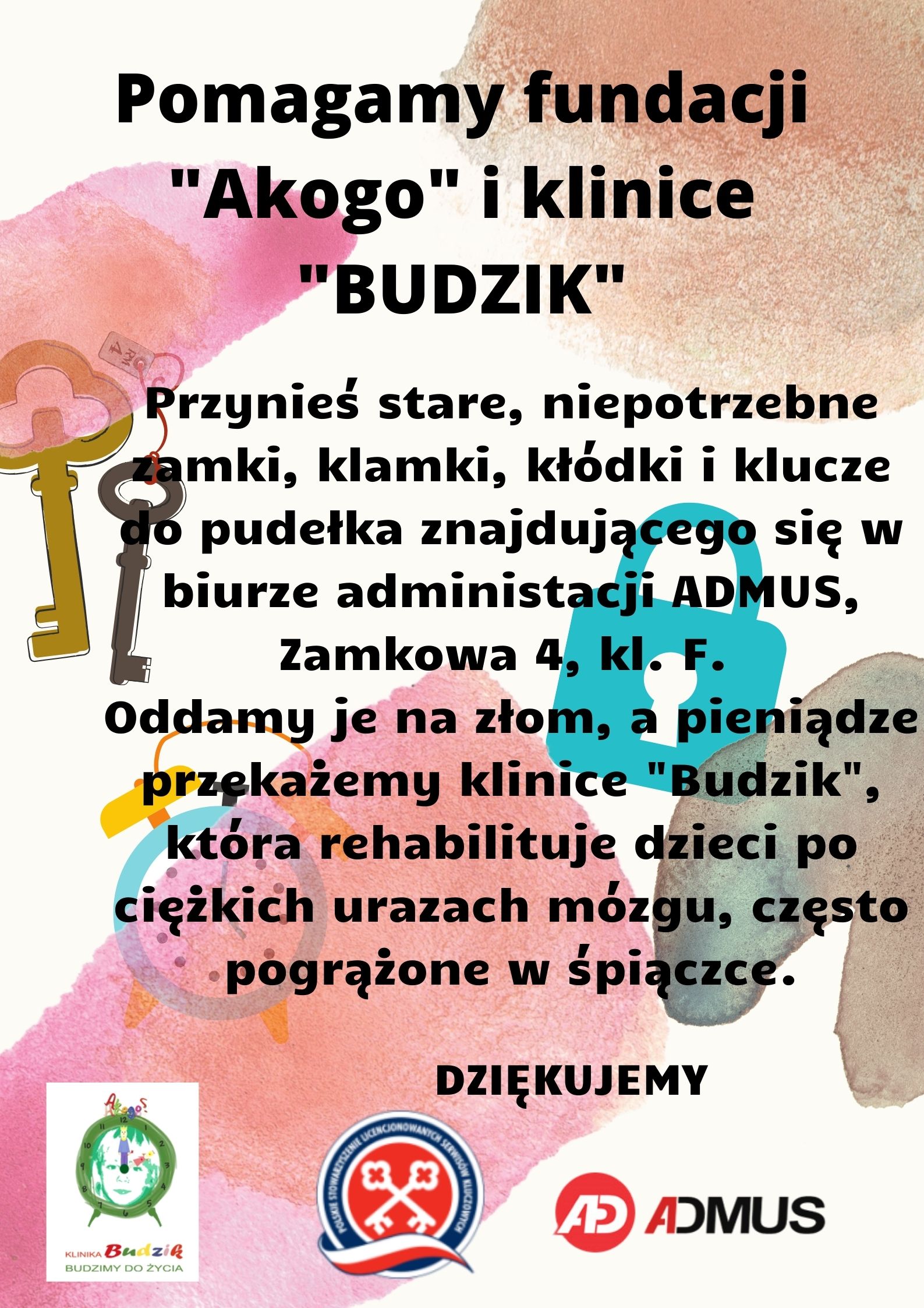 Współpraca firmy Admus polega na przeprowadzeniu na osiedlach, którymi się zajmujemy, zbiórki starych, niepotrzebnych kluczy, zamków, kłódek i klamek. Przedmioty te będą następnie sprzedawane jako złom, a pieniądze wpłacimy na konto fundacji.