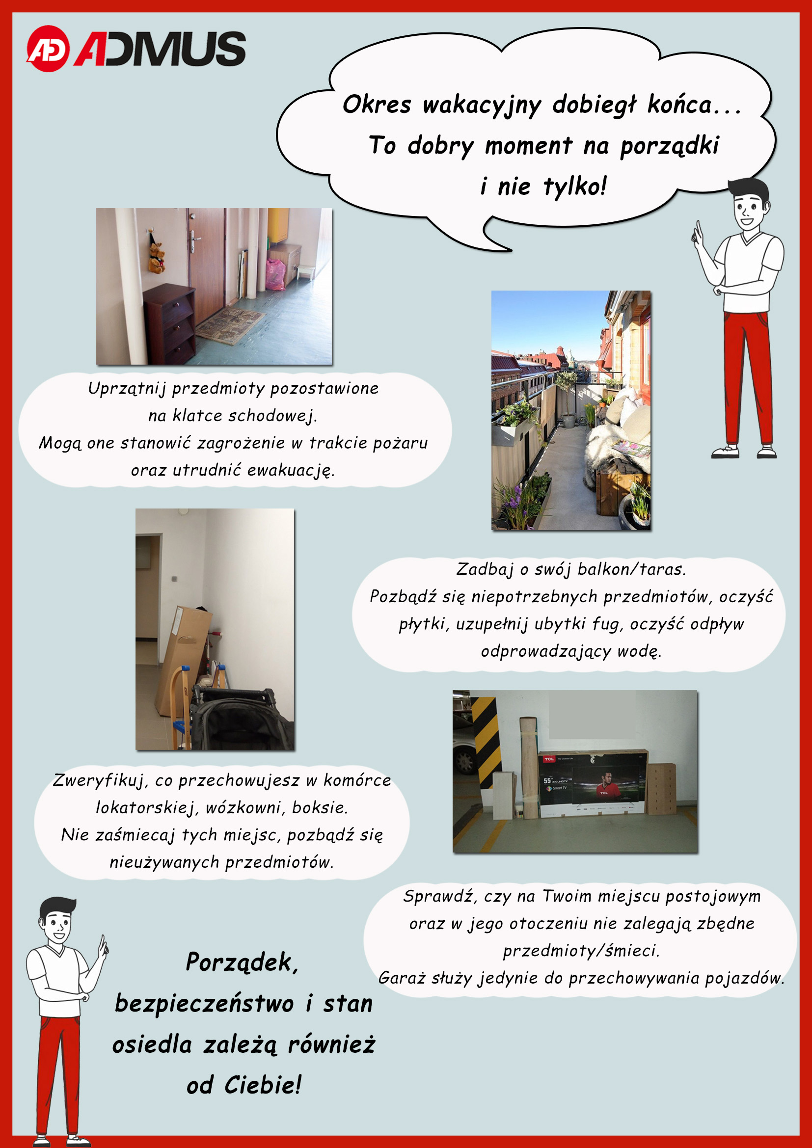 - zabronione jest pozostawianie wszelkich przedmiotów na klatkach schodowych – stanowią one drogę ewakuacyjną