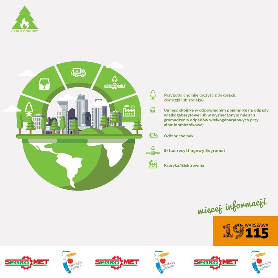 Tegoroczna akcja obejmuje wszystkie dzielnice. Operatorzy odbierają drzewka, które są oczyszczone z ozdób, lampek i stojaków. Przekazane choinki staną się wysokoenergetyczną zieloną energią, wykorzystywaną do ogrzewania domów bądź produkcji prądu. Zbiórka potrwa do 29 marca.